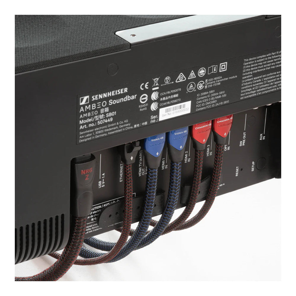 - Noise-Dissipation (Level 3): In addition to all 19 HDMI conductors being Direction-Controlled to reduce RF Noise, AudioQuest Cinnamon 48 HDMI cables feature a high-loss carbon layer sandwiched between layers of metal around the 4 FRL + eARC pairs to further enhance noise-dissipation.