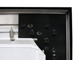 - Acoustically transparent screen material allows speakers to be placed behind the screen