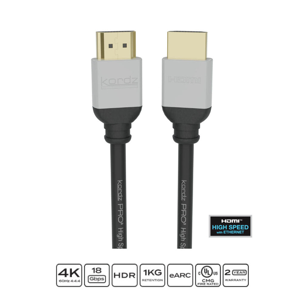 Kordz PRO³ Series is engineered to increase AV installation uptime with high quality materials and production processes for an updated 18Gbps signal across all lengths. Each cable combines lightweight, small form-factor assemblies, gold-plated 1kg retention HDMI connectors and a highly flexible fire-rated cable to make installations easier for the professional AV integrator. This update also reduces the connector footprint by 65% of the previous model, is licensed to support all HDMI 2.0 features and is backed by a Lifetime Warranty.
