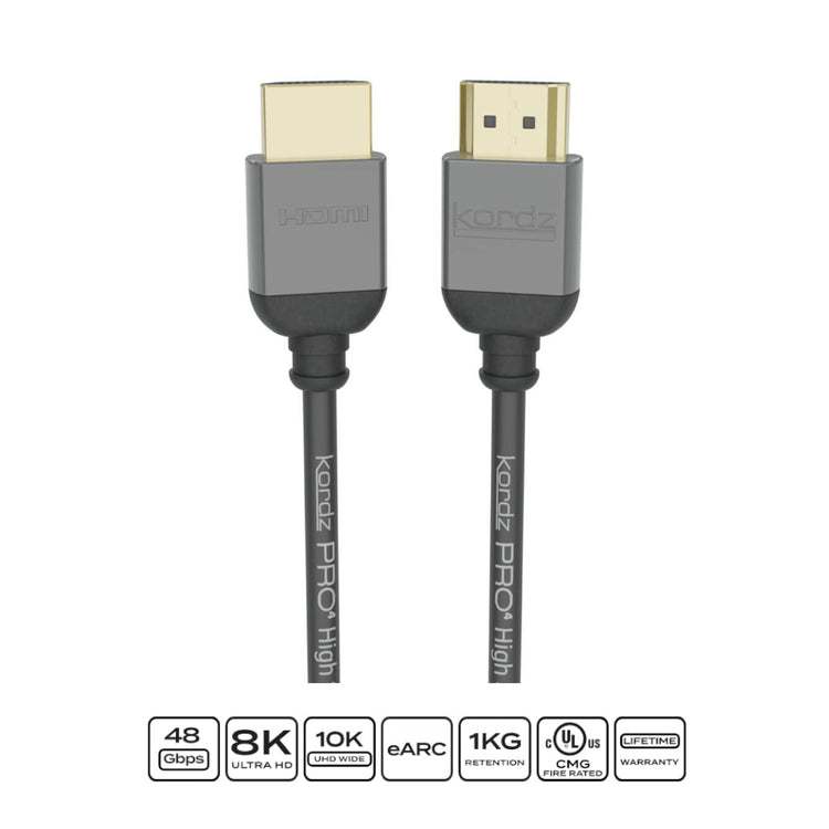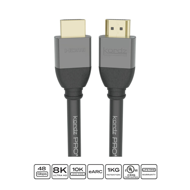 The Kordz PRO4 Passive HDMI® Cable is the professional grade solution for uncompressed 8K/10K HDMI signal transmission, supporting full 48Gbps bandwidth and eARC compatibility for flawless audio-visual performance in short to medium length installations up to 9m.