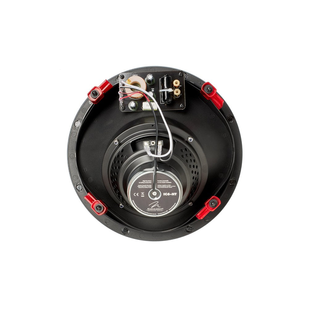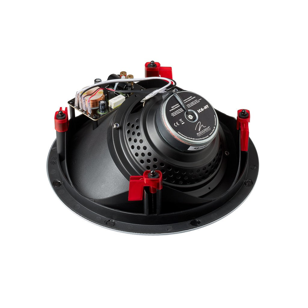 Designed with a special baffle, the IC6-HT in-ceiling speaker features a woofer and titanium dome tweeter mounted at a 30° angle, making IC6-HT ideal for large multi-channel installations where in-ceiling speakers. Sound can be easily directed toward the listening area by rotating the speaker assembly before moving the mounting-locks into place.