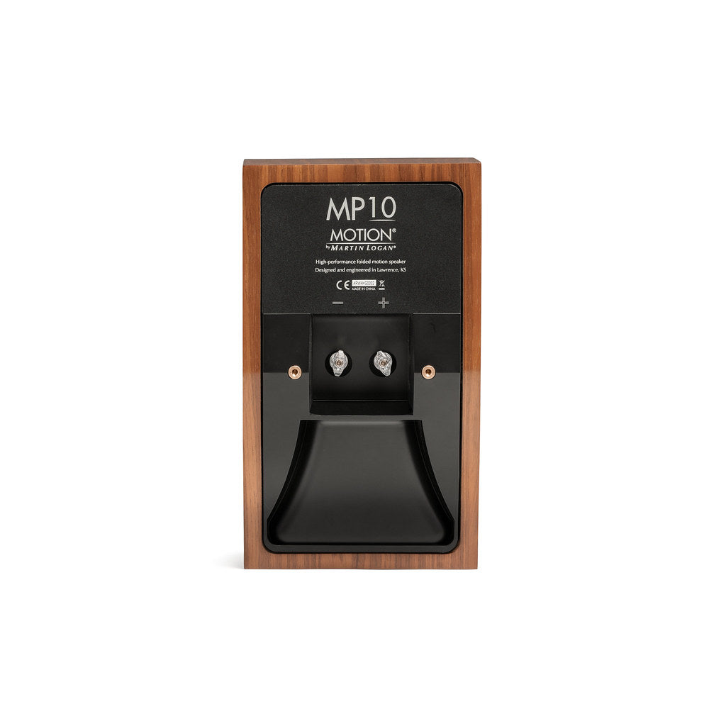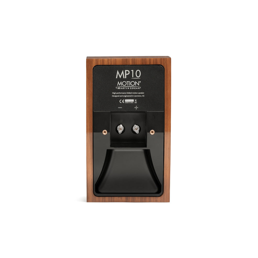 MP10's Stealth Bass Port allows it to achieve comparable bass output to that of traditional bookshelf speakers but at half the depth. Its innovative shape and mounting system allows MP10 to be used as a shallow depth bookshelf speaker or wall mounted using the included bracket. When wall mounted, the brilliant Stealth Bass Port does not interfere with the bracket allowing MP10 to be mounted parallel to the wall surface or angled downwards into the room, perfect for when installation above ear level is desired.
