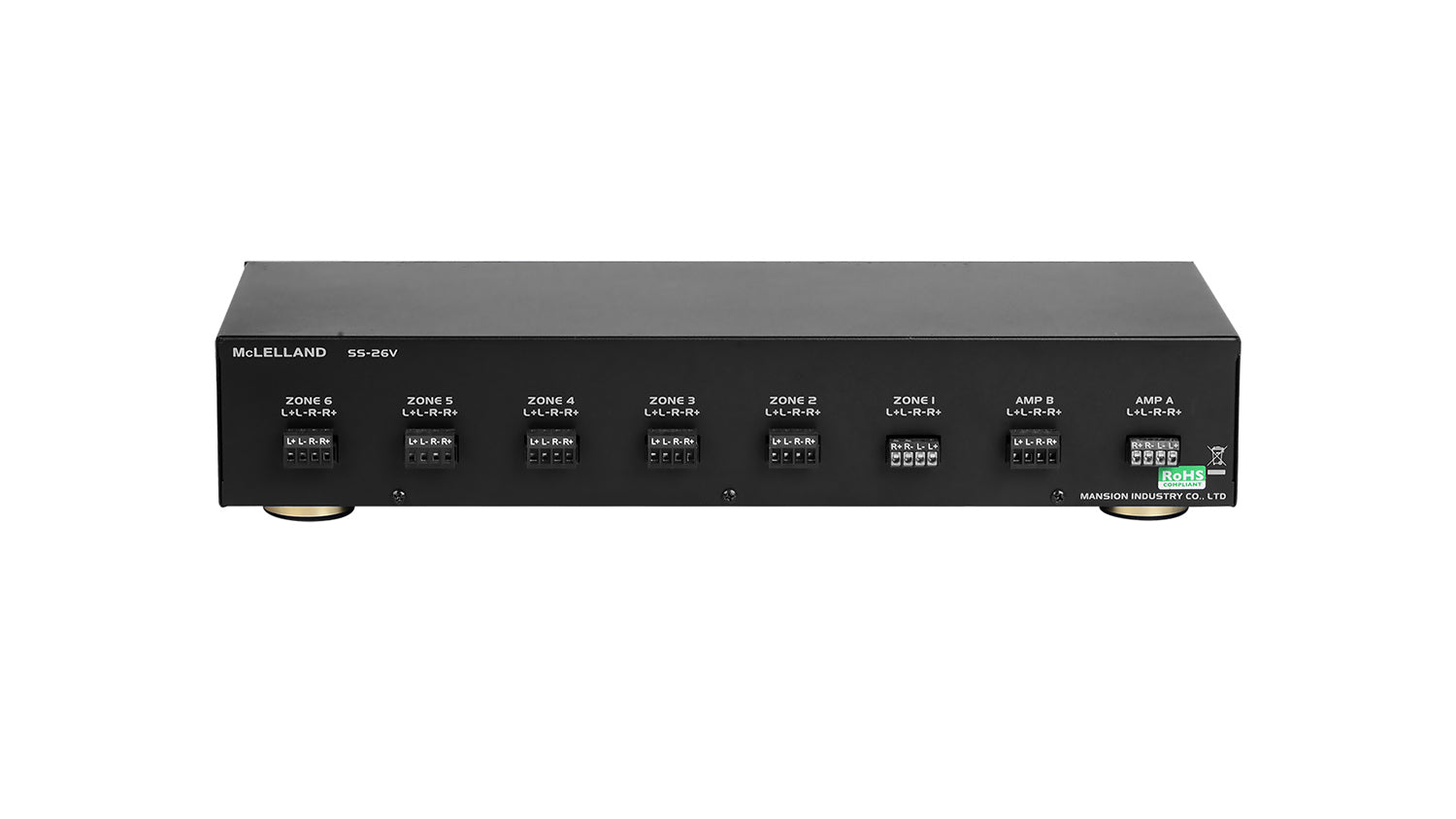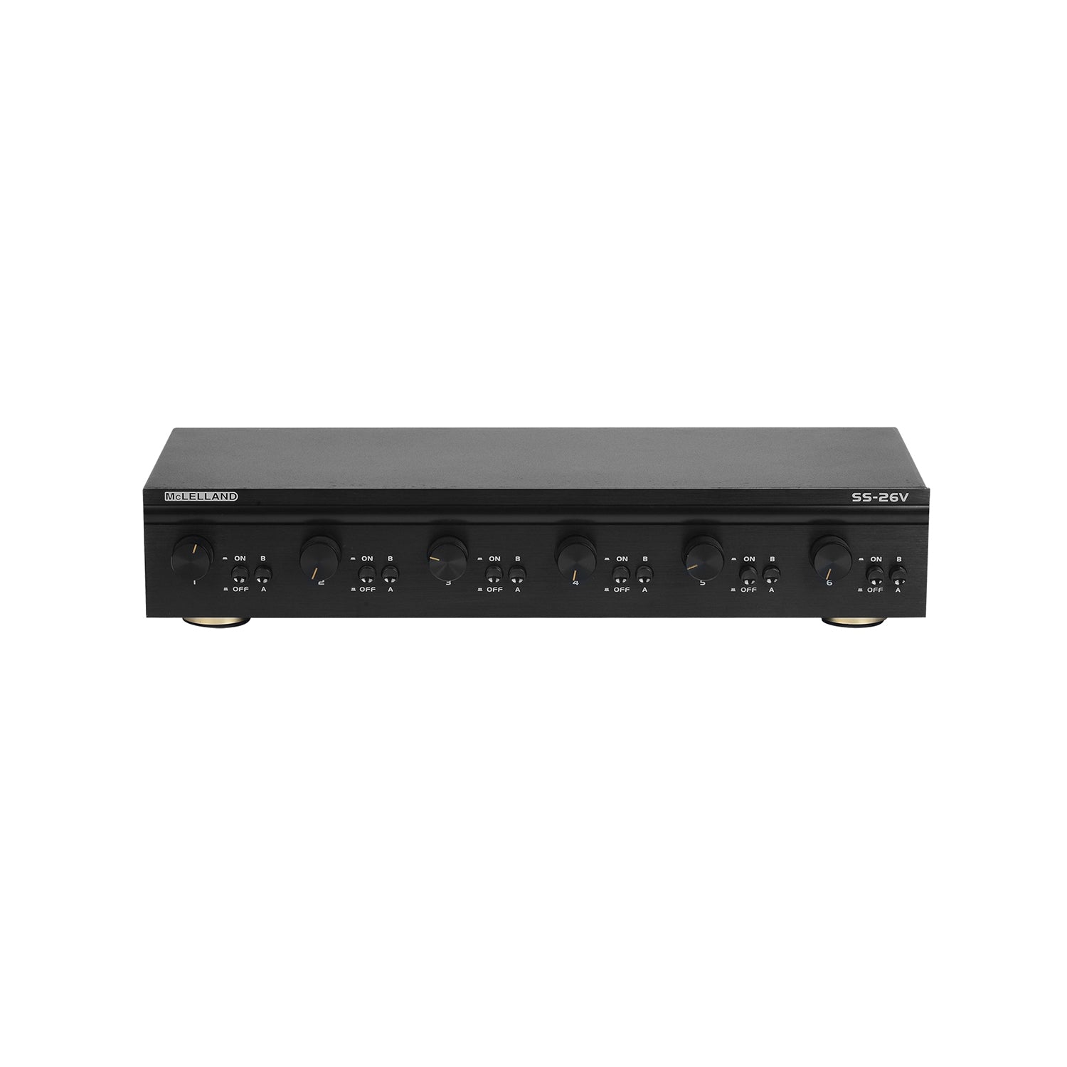 Controls six pairs of speakers. The SS26V is fitted with separate volume controls for each pair of speakers, speaker on/ off, and speaker protection on/off switches.