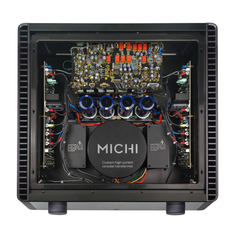 Michi X3 Series 2 is built for music lovers and audiophiles alike with every aspect of its design, engineering, and manufacturing meticulously refined to deliver exceptional performance. An oversized in-house manufactured toroidal transformer powers isolated digital, analogue, and high current amplifier circuits further reducing electrical noise and interference.