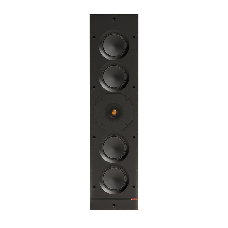 This large-sized Tier 1 in-wall loudspeaker is designed for cost-effective installations, where product simplicity and solid acoustic performance are required. It is a two-way model featuring four C-CAM mid-bass drivers and a C-CAM tweeter. The performance benefit of having both within a single design means greatly improved clarity, wider dispersion into the listening environment, and clear, lifelike, high-fidelity sound—of the quality you’d expect from any Monitor Audio passive box loudspeaker. It has a cut-out dimension of 880 x 202 mm and uses the Quik-Link speaker cable connector, which revolutionises the ease and speed of speaker installation. Tri-Grip has also evolved for simple, reliable, and strong fitment.