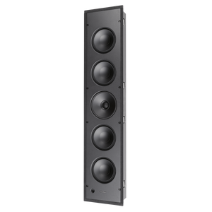 - Design: 4 driver, dual passive radiators, 3 way, shallow enclosure in-wall design
