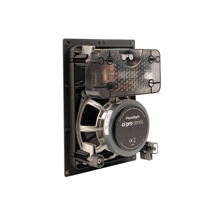 Paradigm's high-strength die-cast aluminium chassis and clamp system address the flexibility problem that plagues all walls and ceilings. Chassis stiffness combats unwanted resonances and vibrations, and equally important, the new clamp design makes the installer's job easier and faster! Simply push the speaker into the ceiling or wall and screw it in.