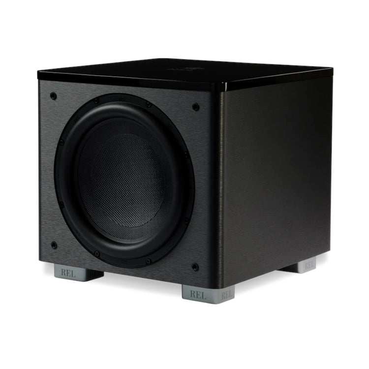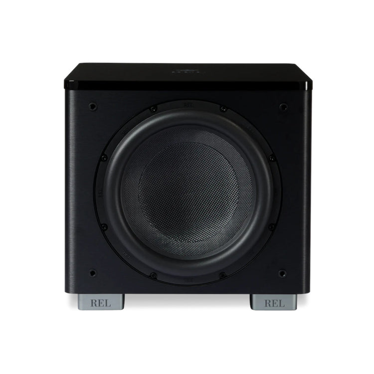 Avoiding electronic gimmickry in favour of properly balanced priorities; cabinets that are right-sized, solidly braced and beautifully finished. A sparkling new amp design that effortlessly delivers 500W into an all-new CarbonGlas™ 12” (300mm) driver. The sexy new black lacquer top plate has a subtle REL logo floating on top, while the expensively wrought black line-grained composite for the cabinet looks the business.