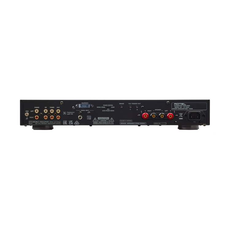 Both analog and digital sources are welcome, with three line-level RCA inputs, coaxial and optical digital inputs, a Moving Magnet Phono stage, and aptXTM HD Bluetooth. An 1/8” headphone jack with dedicated headphone amplifier circuit is provided on the front panel for private listening sessions.