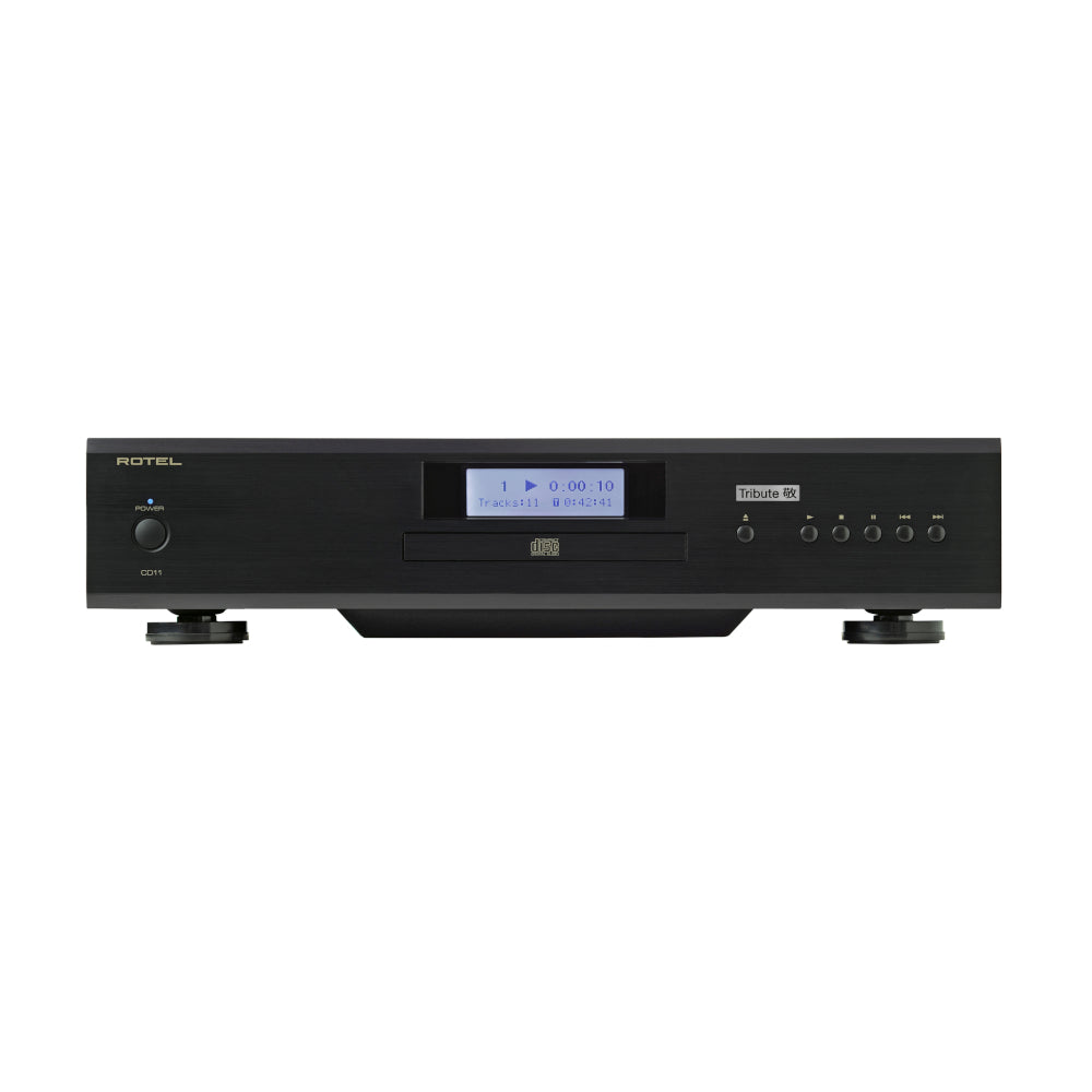 The CD11 Tribute features a front panel graphic display that can display CD metadata when available on the disc, and includes an IR remote. Additional convenience and integration features are a 12V trigger input, and a bidirectional RS232 interface for maximum flexibility to add the CD11 to any control system.