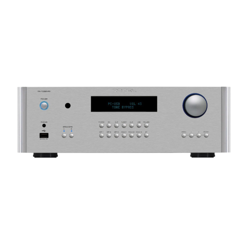 The RA-1592MKII delivers 200 Watts of Class AB output into 8 ohm speakers supporting your favorite analog, digital, XLR, aptXTM and AAC Bluetooth, PC-USB with MQA and Moving Magnet Phono stage inputs. The audiophile grade 32-bit/384kHz DAC and precisely tuned circuits delivers an unprecedented sound stage with exacting positioning.