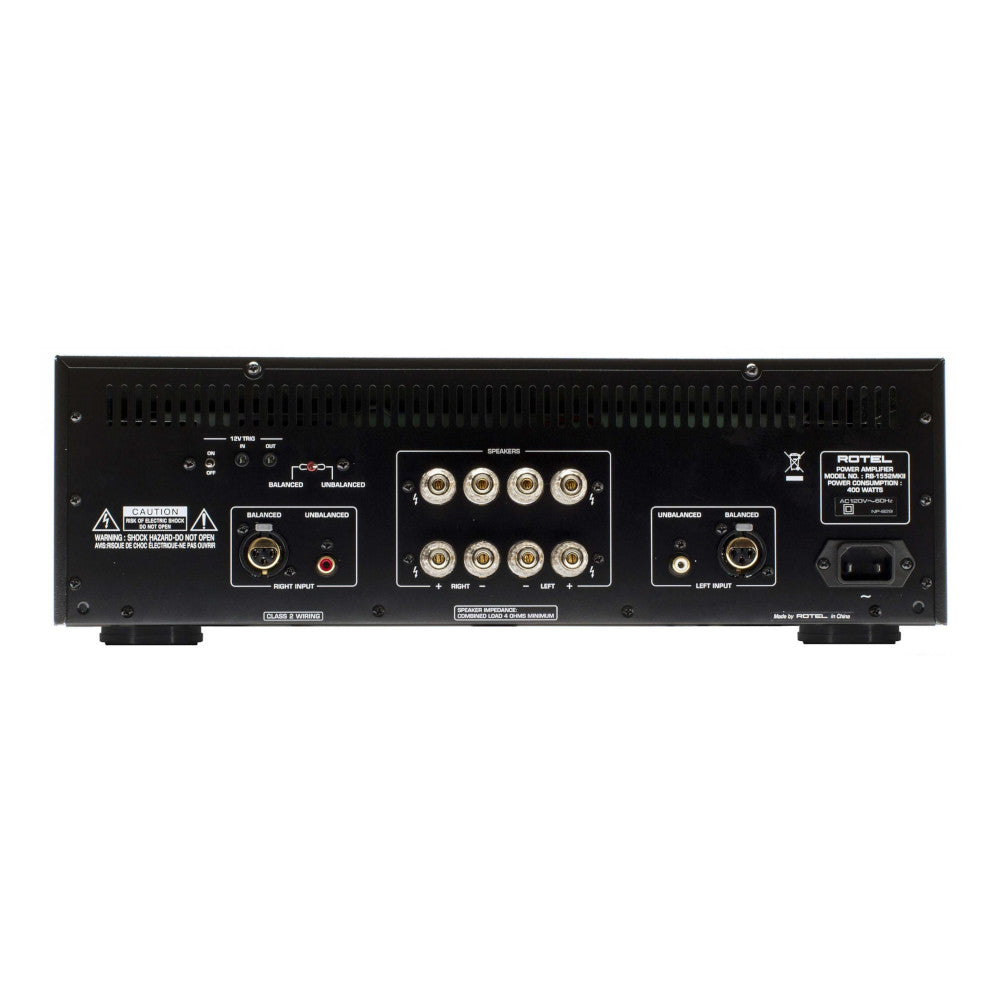 Rotel engineering’s fanatical attention to detail means the sum is greater than the parts; this is what we call our Balanced Design Concept. Each aspect of design is carefully considered holistically to result in maximum audio performance, from the selection of an over-sized power supply featuring a highly efficient, low magnetic field toroidal transformer to multiple, high-current bipolar output transistors. Circuit topology is planned, implemented, evaluated, and adjusted to achieve optimum results. The RB-1552 MKII 120 watt Class A/B amplifier features independent left and right power rectification stages and decoupling, and is essentially a mono block design. Further evidence of design over-spec is in the selection of premium “slit-foil” capacitors, which provide plenty of reserve energy for extremely dynamic audio passages and are able to quickly replenish themselves due to the nature of their unique design. Input options are balanced XLR or unbalanced RCA connectors.