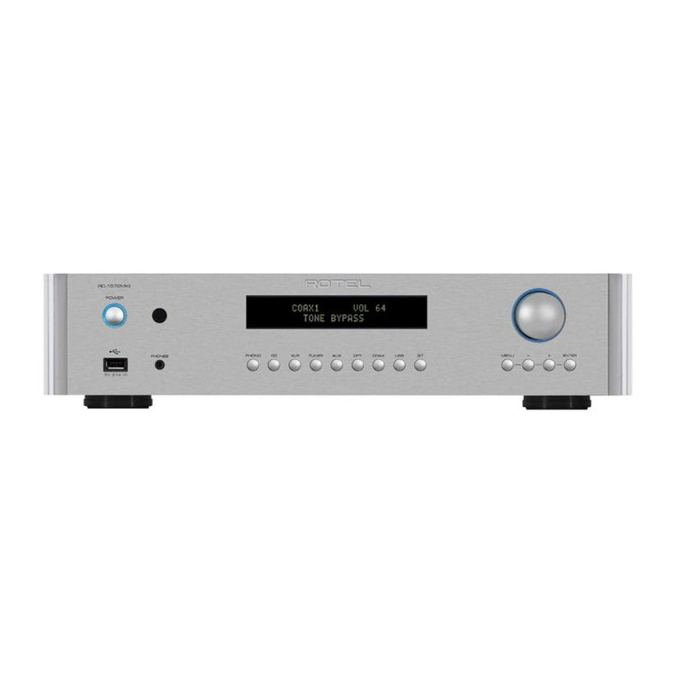 The RC-1572MKII is easy to operate using the included remote control and front panel display. Automatic power controls, signal sensing, fixed volume settings and tone adjustments optimize customization settings.