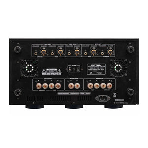 The power supply of RMB-1585 MKII’s output section benefits from eight British-made BHC Slit Foil caps, each with a capacity of 15,000 µF. And each channel uses six individual power transistors to ensure stable power delivery to all speakers in the system even under the most demanding conditions. Dual fans provide more-than-adequate airflow for proper thermal dissipation.