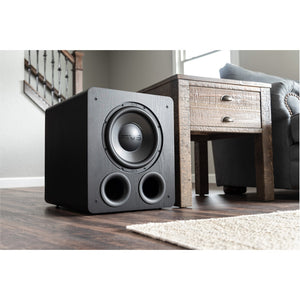 - Front-firing 12-inch high-excursion SVS driver