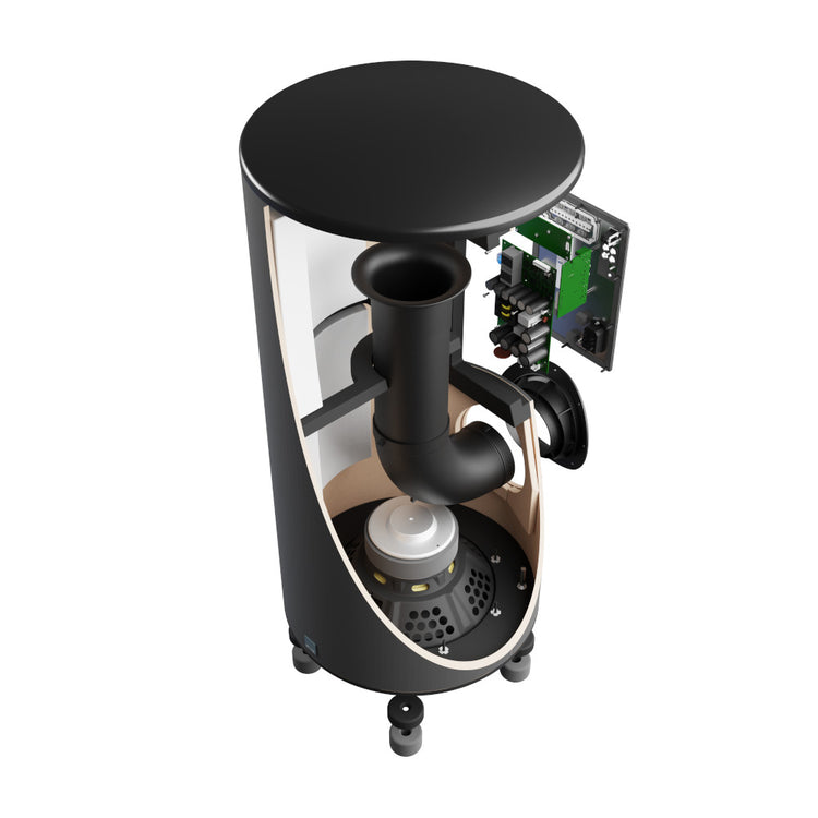 - Cylindrical Design allows a small footprint without sacrificing performance