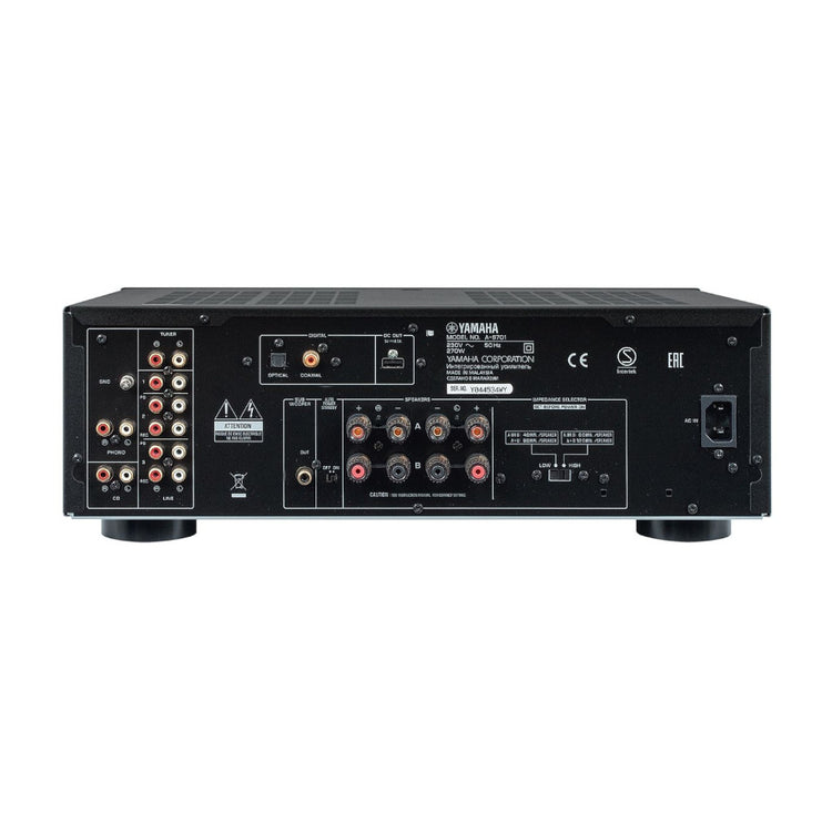 Extremely pure sound quality and outstanding drive power. The Yamaha A-S701 integrated amplifier provides a pure connection to all of your music with a range of analogue inputs and two digital inputs.