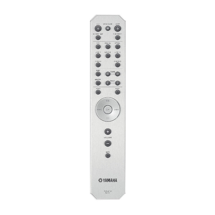 The clean, simple design of the remote control provides easy-to-understand one-hand operation. The easy-to-use design makes it simple to adjust song volume and order. The unit has a sophisticated looking hairline finish that matches the design of the amplifiers. You can also use the remote to control a Yamaha CD player.