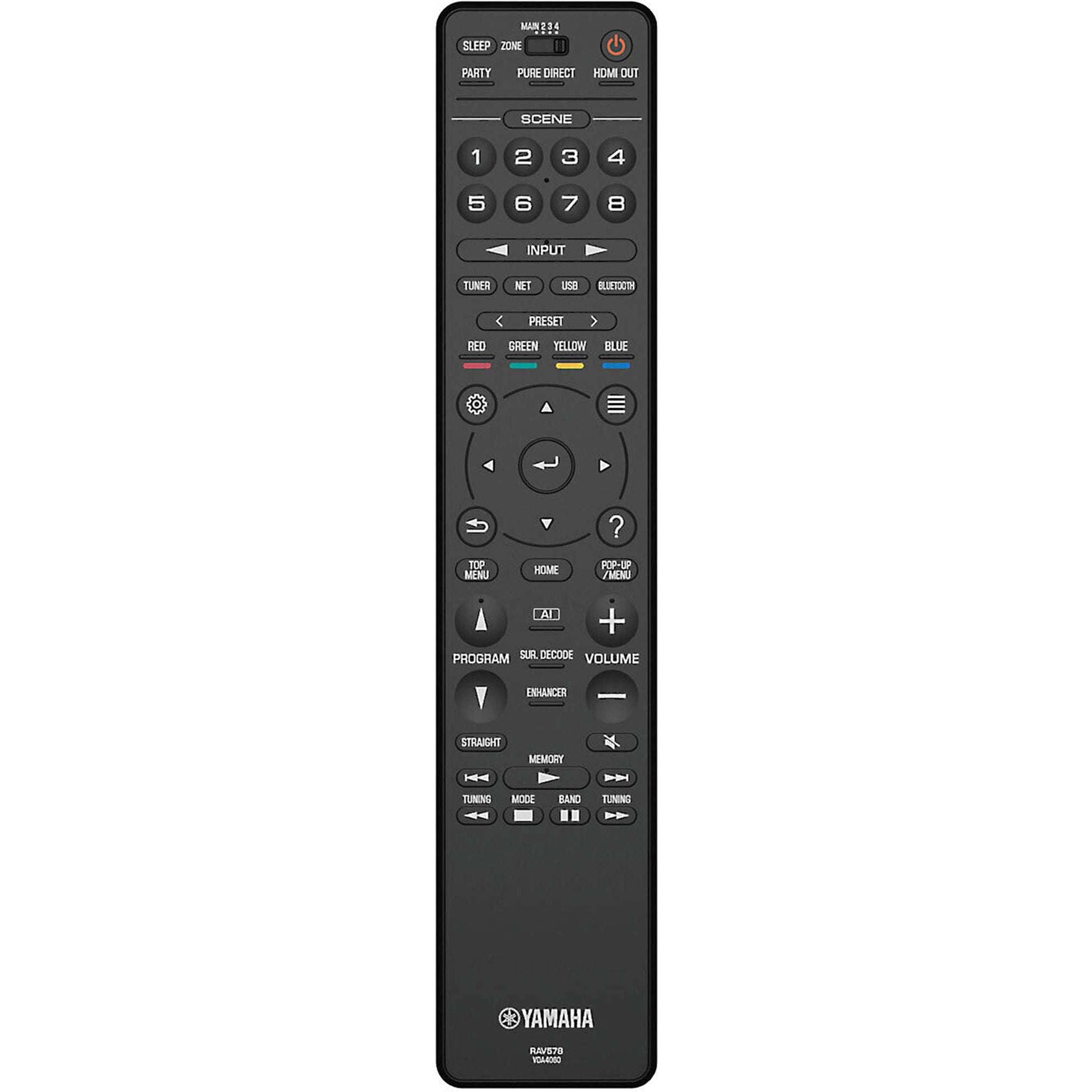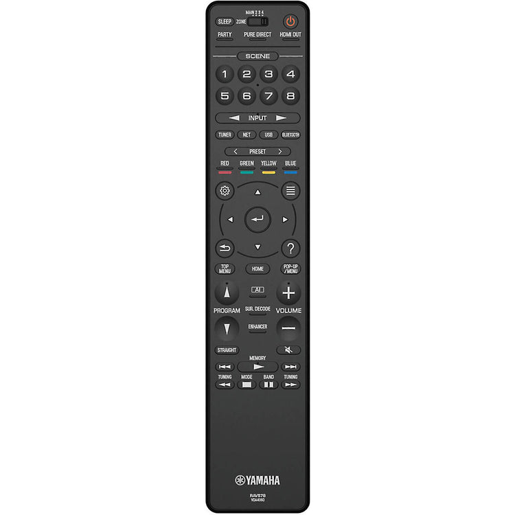 There are four SCENE buttons. You can preset them for different inputs, as well as a sound field program, Music Enhancer, HDMI output and more. The inputs can be set to specific sources, such as an FM or Internet radio station, a station on a streaming service, a USB device or a song on a PC or NAS (network). Once you have set the buttons, simply press one on the main unit or the remote control to power on the receiver and hear your desired music. The buttons can be re-set at any time.
